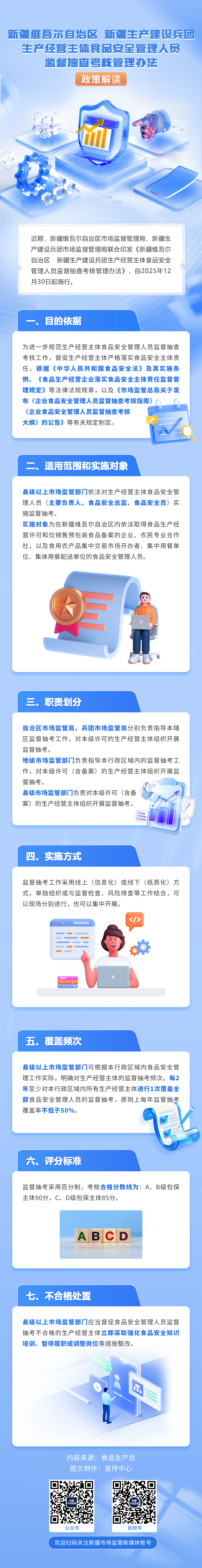 政策法规《新疆维吾尔自治区 新疆生产建设兵团生产经营主体食品安全管理人员监督抽查考核管理办法》政策解读