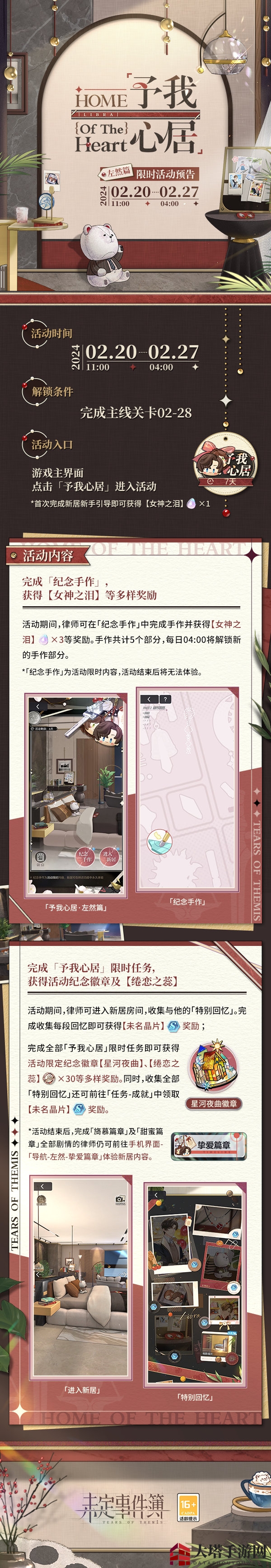 ※活动结束后,完成「旖慕篇章」及「甜蜜篇章」全部剧情的玩家仍可前往手机界面-「导航-左然-挚爱篇章」体验新居内容